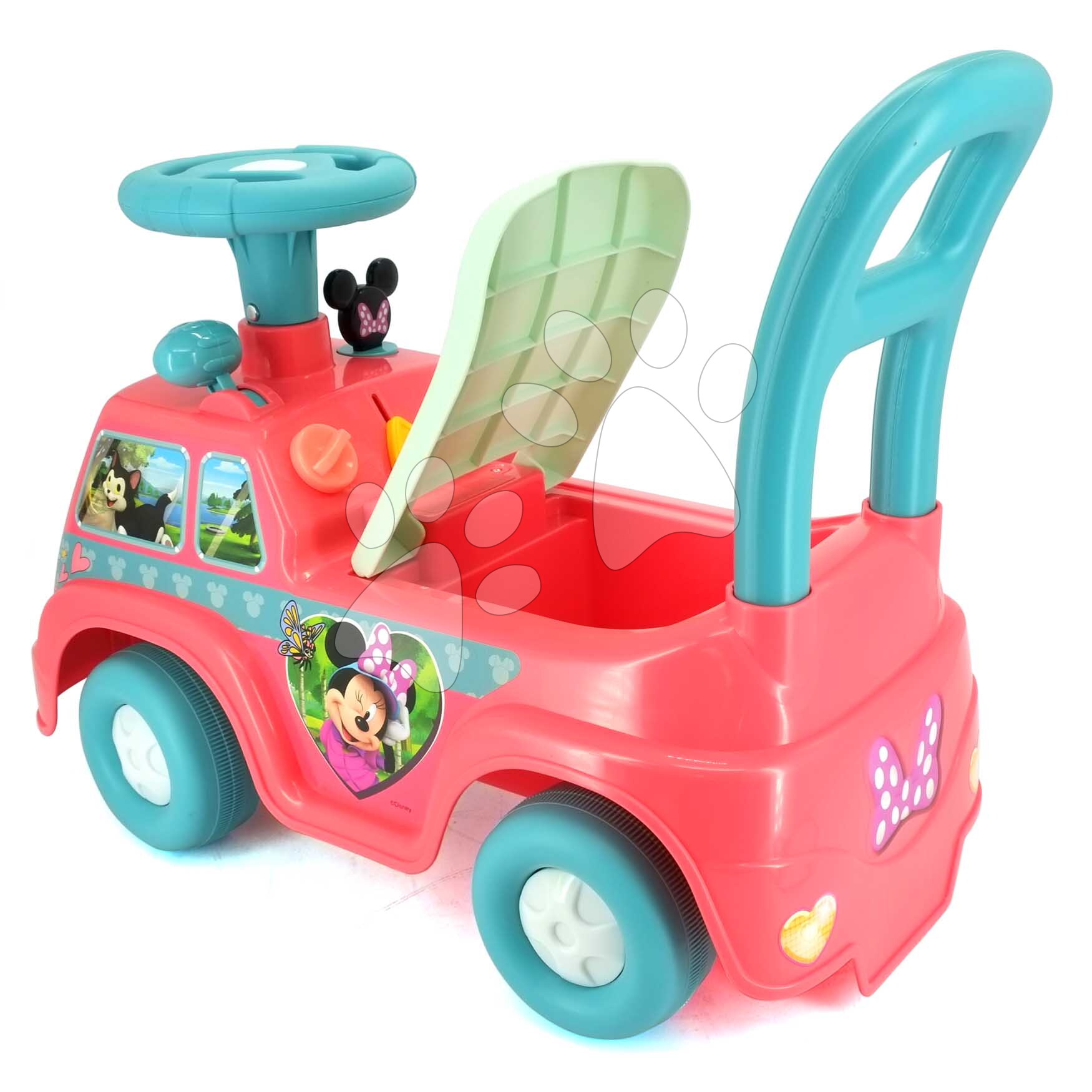 El cochecito original tiene ruedas de plástico de alta calidad y un asiento ergonómicamente diseñado, que se puede inclinar y debajo del cual hay un espacio de almacenamiento. El patinete para niños es la elección correcta para todos los niños curiosos que desean explorar y conocer el mundo que les rodea. Gracias al encantador diseño con alegres imágenes de Minnie y Daisy, los niños se enamorarán del patinete a primera vista. La estructura de plástico estable y resistente con respaldo durará muchos años y les ayudará a desarrollarse de manera integral.