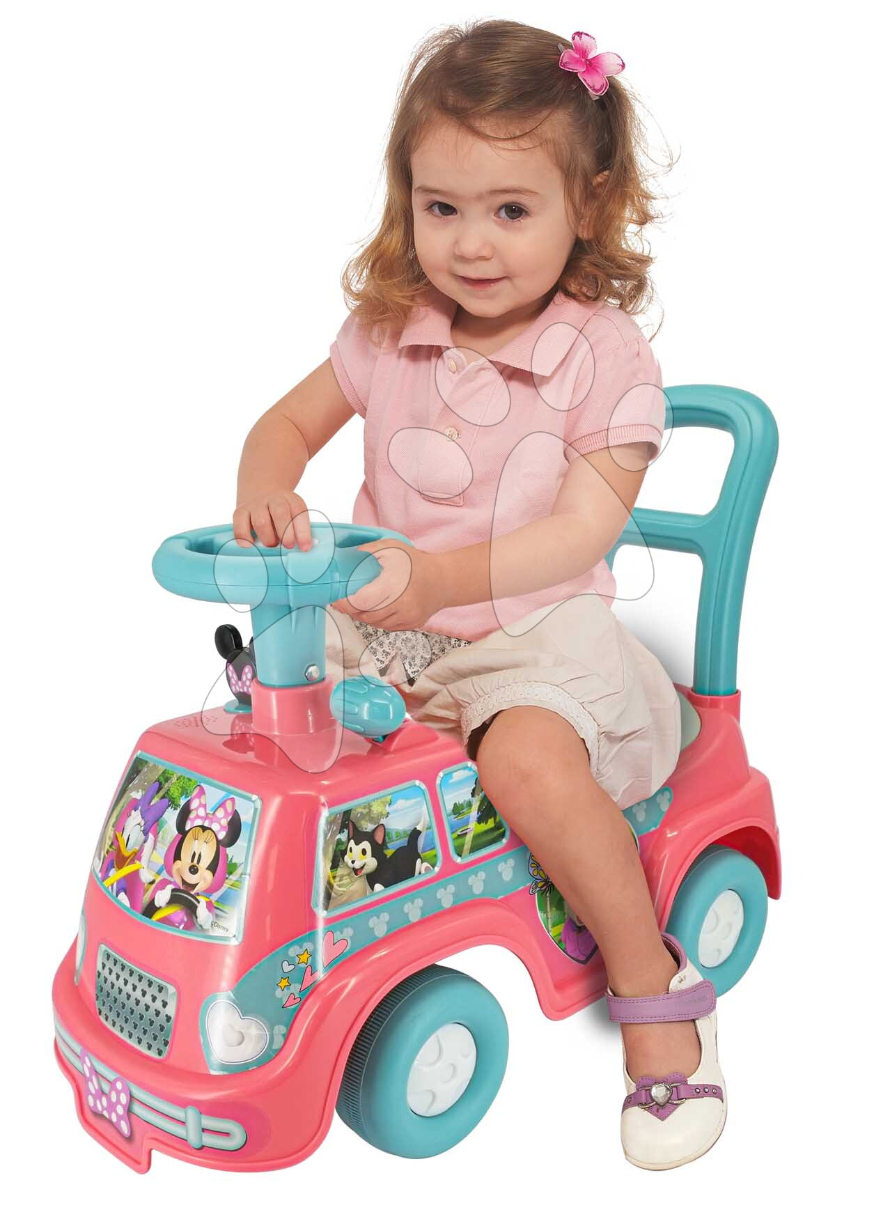 Patinete Camper Activity Ride On representa un regalo original para todos los niños y especialmente para las niñas de 12 a 36 meses. El estiloso patinete de camping está diseñado con el motivo de la personaje animada de Disney Minnie. El patinete de cuento atraerá a los niños con efectos de luz y sonido, y el tablero de instrumentos ofrecerá a los niños diversas funciones interactivas. El patinete ayudará a los niños en el desarrollo de la motricidad fina y el mantenimiento del equilibrio, y los colores vibrantes estimularán su imaginación y creatividad.